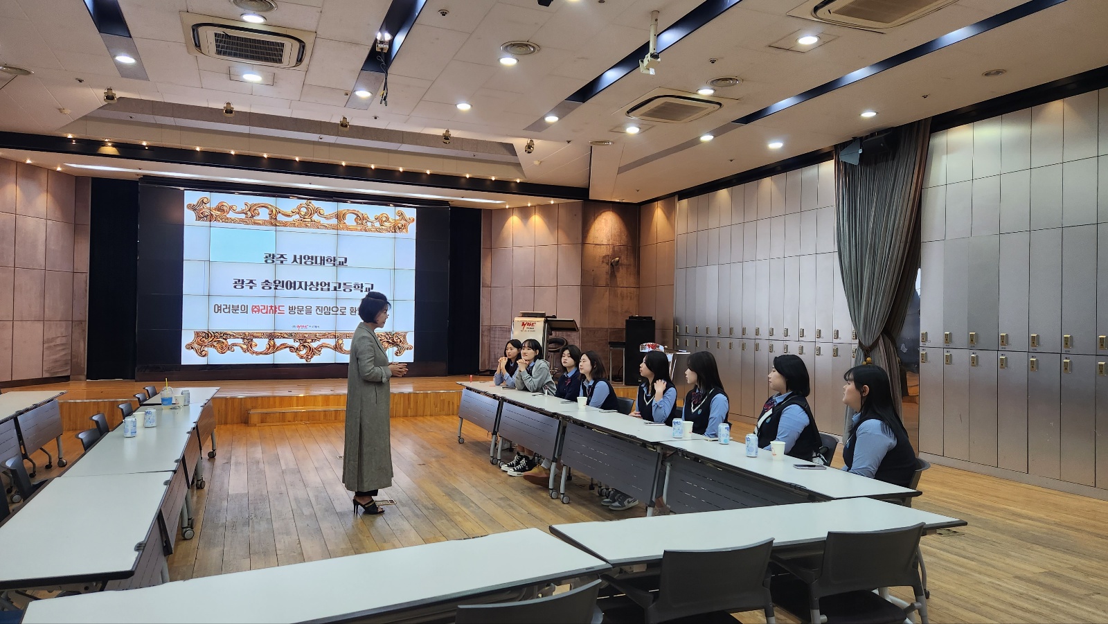 ○ 박정수 학과장은 이번 기업탐방을 위해 모든 일정을 비워주시고 환대해주신 유승주 이사님, 목정현 이사님외 관계자님들께 깊은 감사의 인사말씀을 전한다고 하였다. 그리고 이번 기업탐방은 송원여자상업고등학교와 서영대학교간의 통합연계교육과정 첫 시작을 알리는데 중요한 역할이 되었으며, 직업계고와의 대학연계 교육과정은 전공역량에 매우 도움이 될 것이라고 전했다.