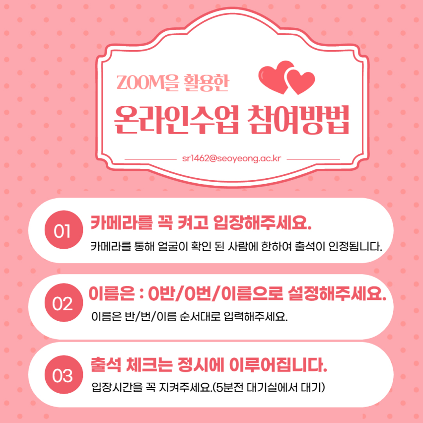 장소 : ZOOM을 통한 온라인 교육(당일 3학년 학년톡방의 링크를 통해 들어와주세요)