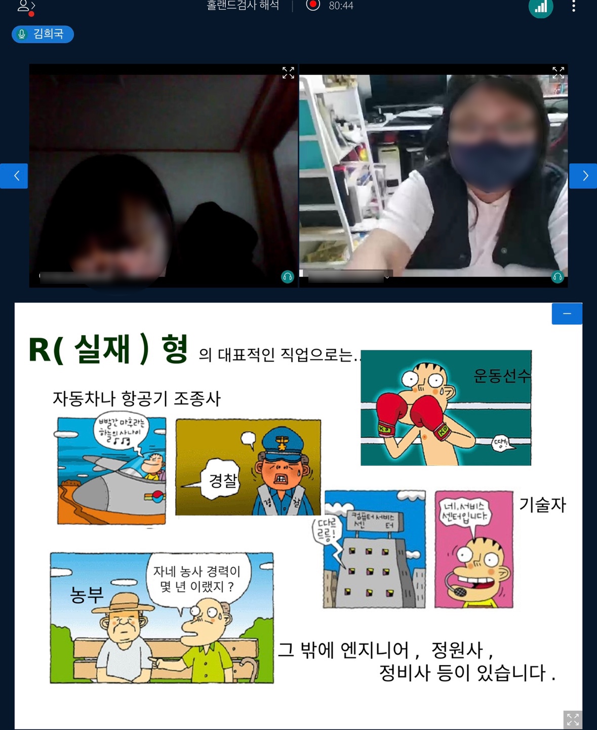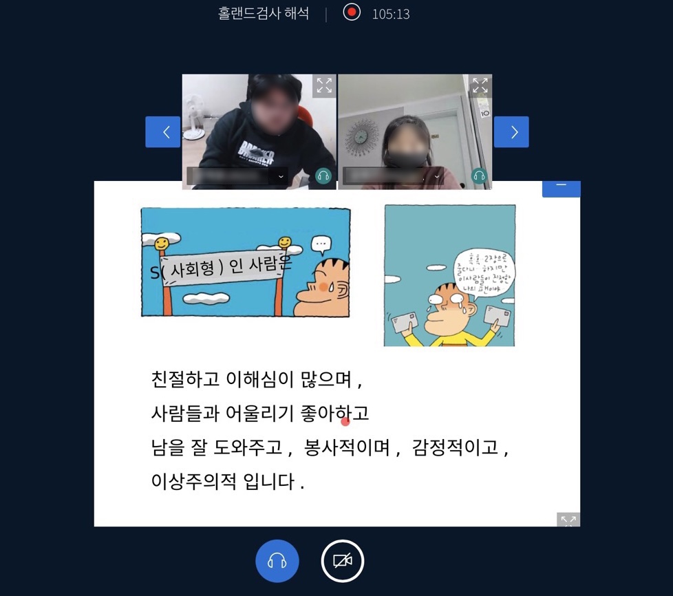 내용 : 진로 적성의 4가지 영역과 성격 유형을 바탕으로 사전 실시한 직업 적성 검사 결과를 실제 경험담을 토대로 학생들과 함께 해석풀이를 진행하였습니다.