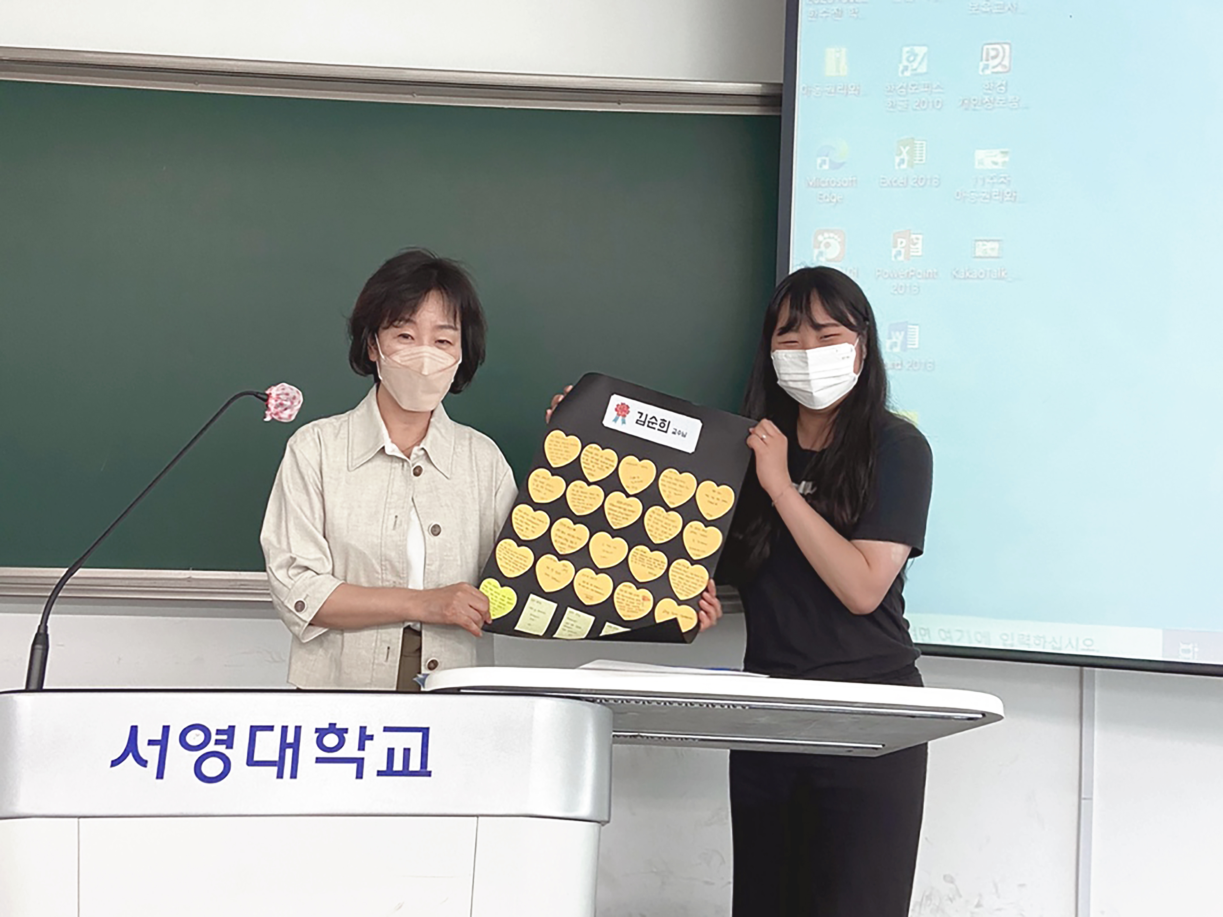 교수님들의 스승의 은혜를 감사하며 축하드리기 위해 유아교육과 학생들이 직접 작성한 편지를 붙인 롤링페이퍼를 외래 교수님들께 전달해 드렸습니다!