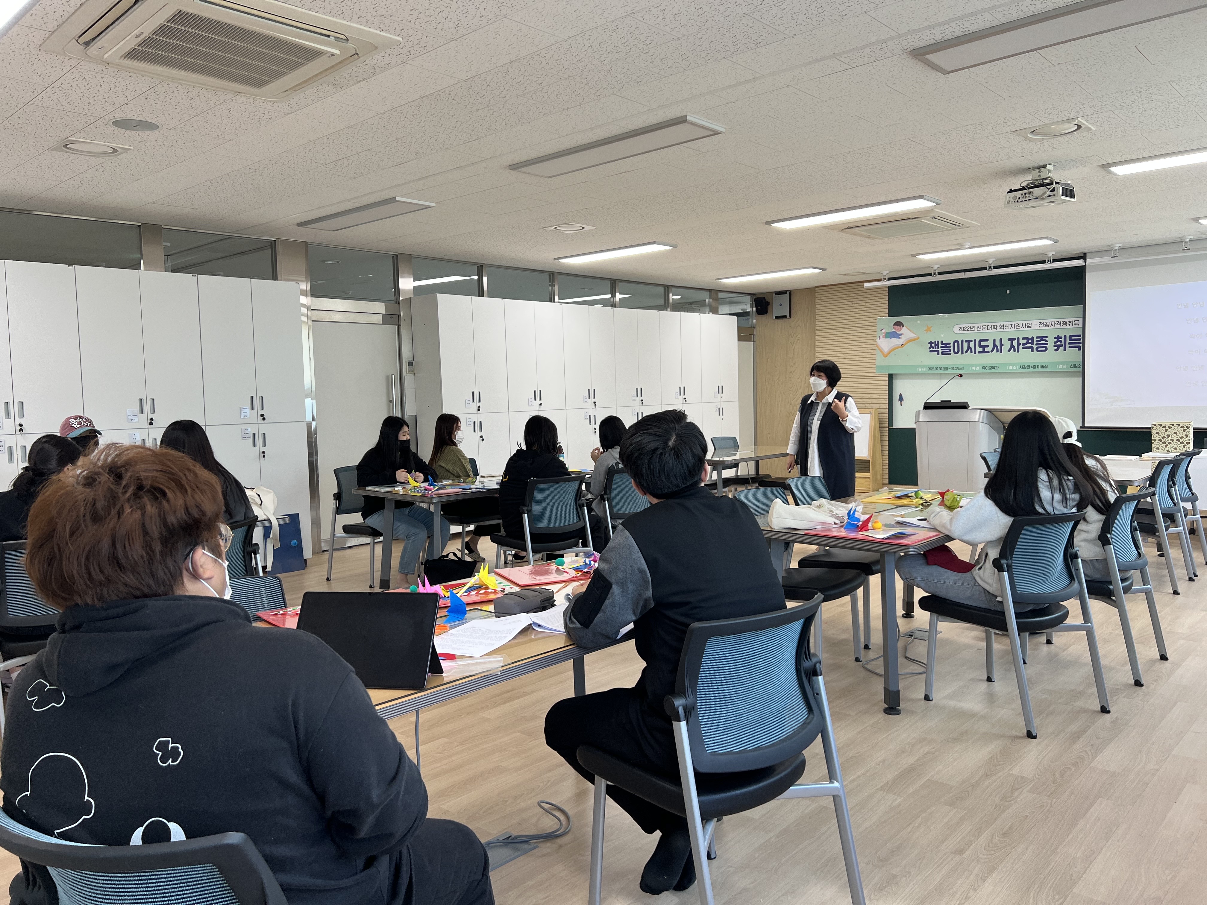 - 내용 : 그림책 스토리텔링 기법을 활용하여 유아의 인성, 상상력, 창의력을 키우며, 공감 소통하는 책놀이 지도방법을 습득하는 시간을 가졌습니다.