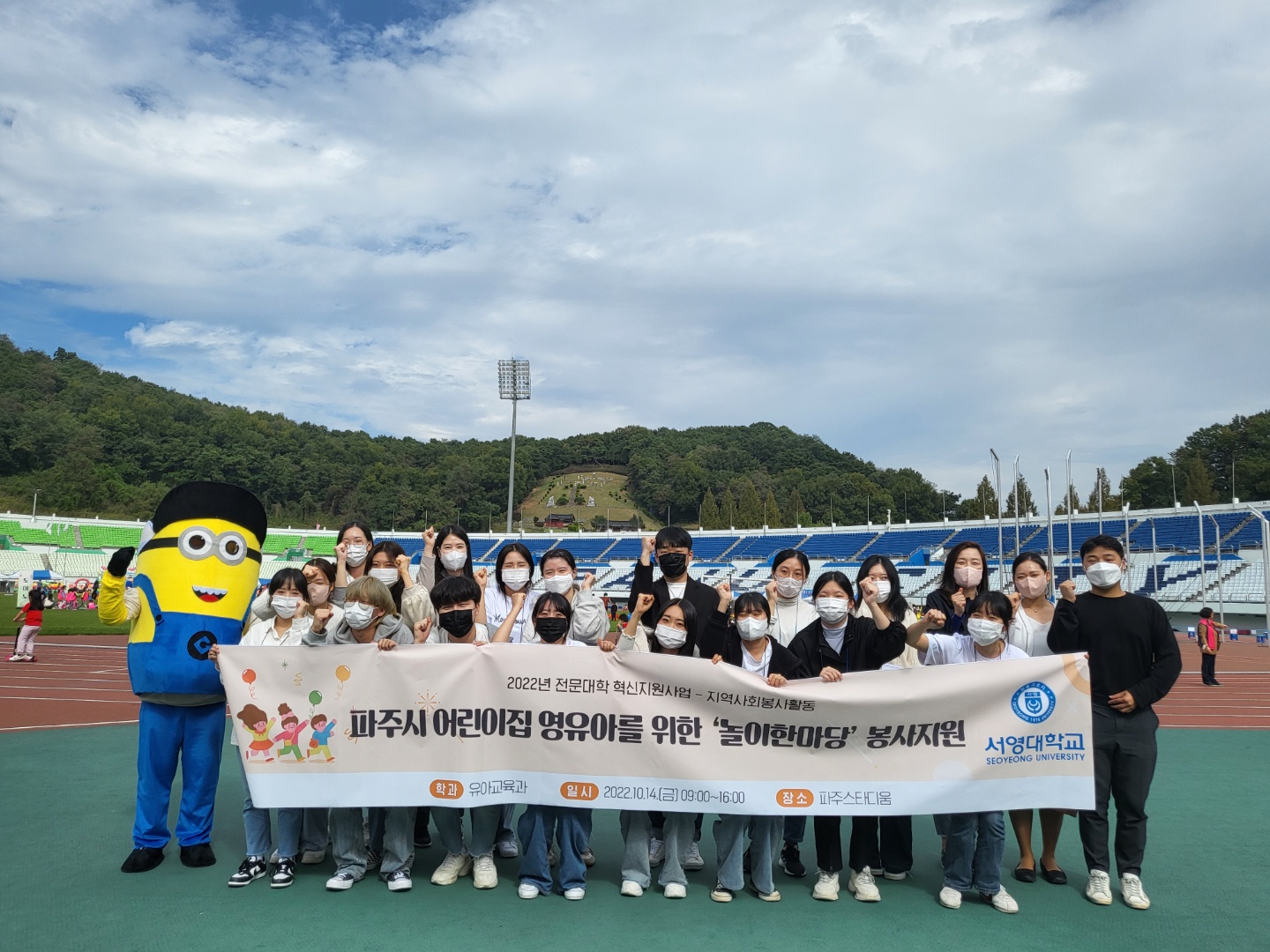 - 내용 : 파주 관내 영유아를 대상으로 파주시육아종합지원센터에서 주관한 '놀이 한마당' 행사에서 체험 프로그램 안전 지도 및 교구 정리를 진행하였습니다.