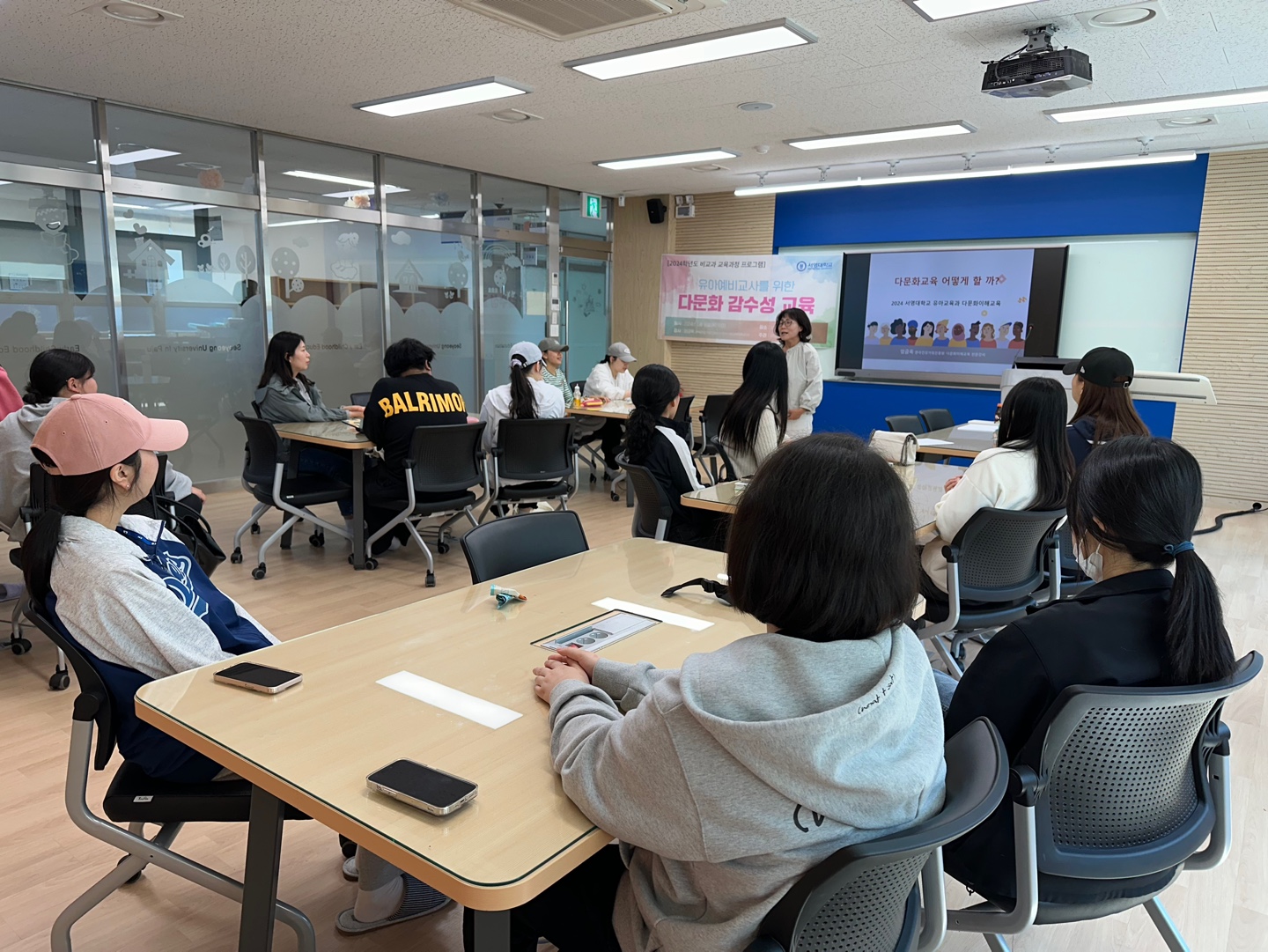 - 내용 : 다문화에 대하여 알아보고 교사가 되어가기 위한 학생들에게 교사로써 갖춰야 할 마인드와 교육방식에 대하여 배웠습니다. 자녀의 양육방식에 대해서도 배우게 되어서 유아에게 필요한 교육을 적절하게 지도할 수 있는 방법을 알아볼 수 있어 유익한 시간이였습니다.