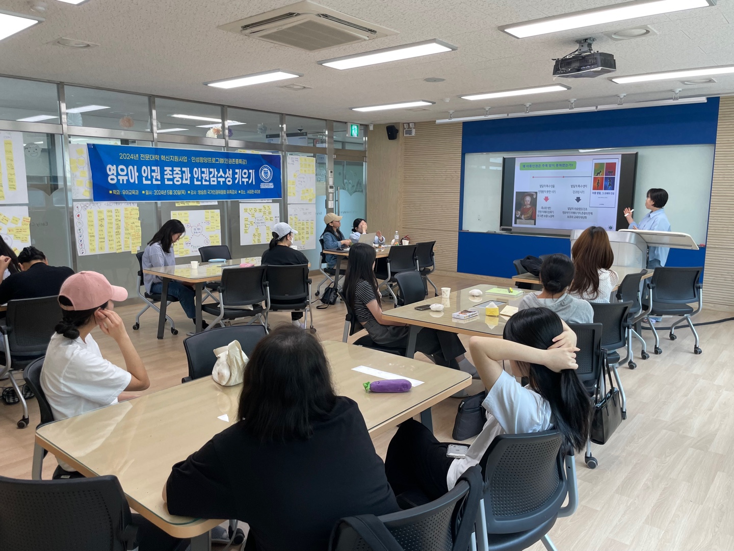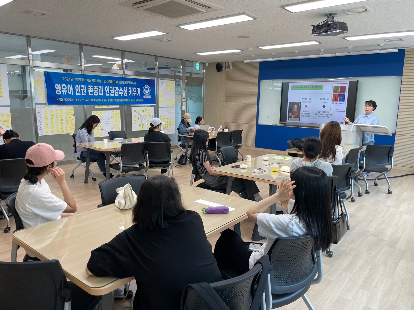 - 내용 : 어린 유아들도 성인들과 똑같이 인권이 있고, 이 인권을 지켜주어야 할 사람은 유아교사라는 것을 이미 알고 있었지만 더 자세히 알게되었습니다. 유아교사로써 아이들을 대하는 말과 말투를 다시 한번 알게 되었고, 유아들도 권리를 존중받아야 할 의무가 있으며, 모든 사람들은 자유롭고, 존엄성과 권리에 있어서 평등하다는 것을 배우게 되었습니다.