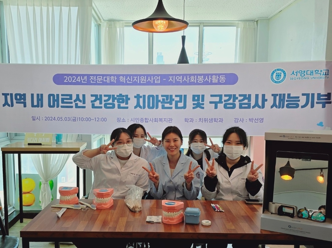 서영대학교 치위생과(학과장 한옥성) 학생들이 시민종합사회복지관에서 봉사활동을 하였습니다.