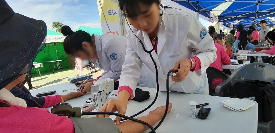 화이트엔젤 봉사동아리 제 20회 사회복지의날 행사인 한마음 축제에 참여하여 보건의료서비스인 혈당과 혈압을