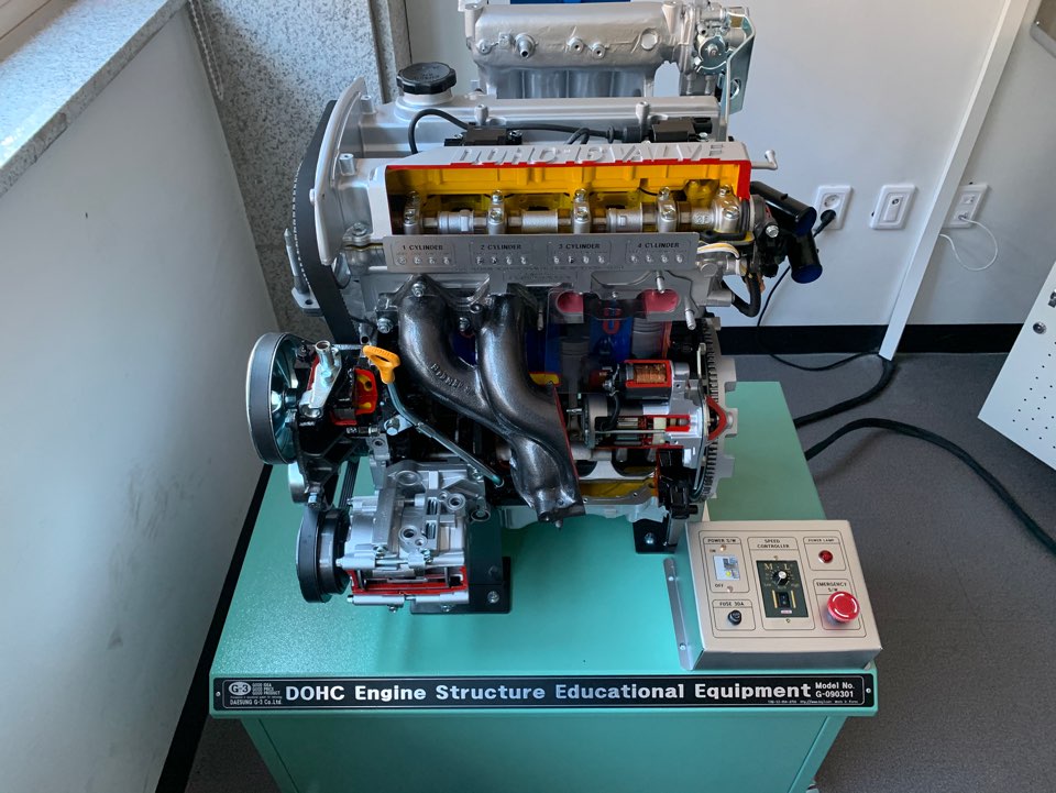 자동차기계과에 이론 교육용 신형 DOHC 시뮬레이터와 GDI 방식의 HG그랜저 V 타입이 새로 구입되었습니다.