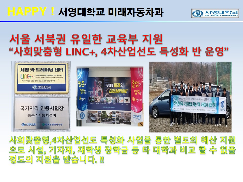 꿈을 꿀 수 있는 서영대학교 그리고 미래자동차는 준비되었습니다.