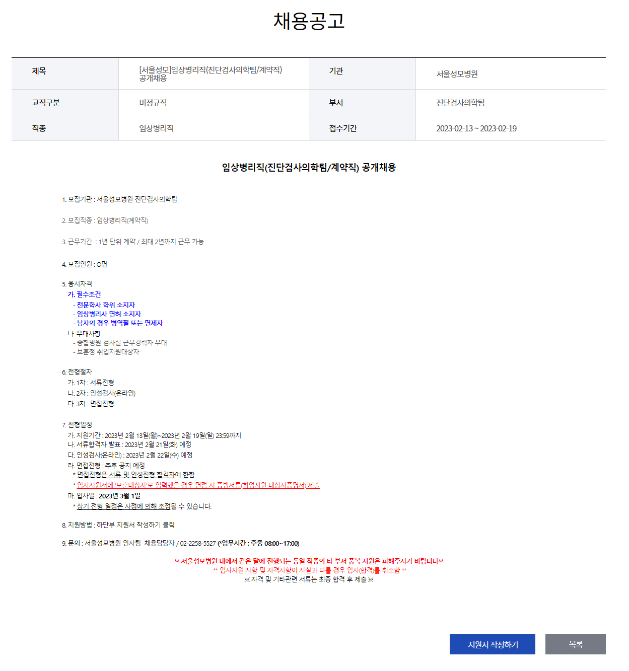 채용공고 - 입사지원 - 가톨릭대학교 서울성모병원 일반채용 (cmcnu.or.kr)