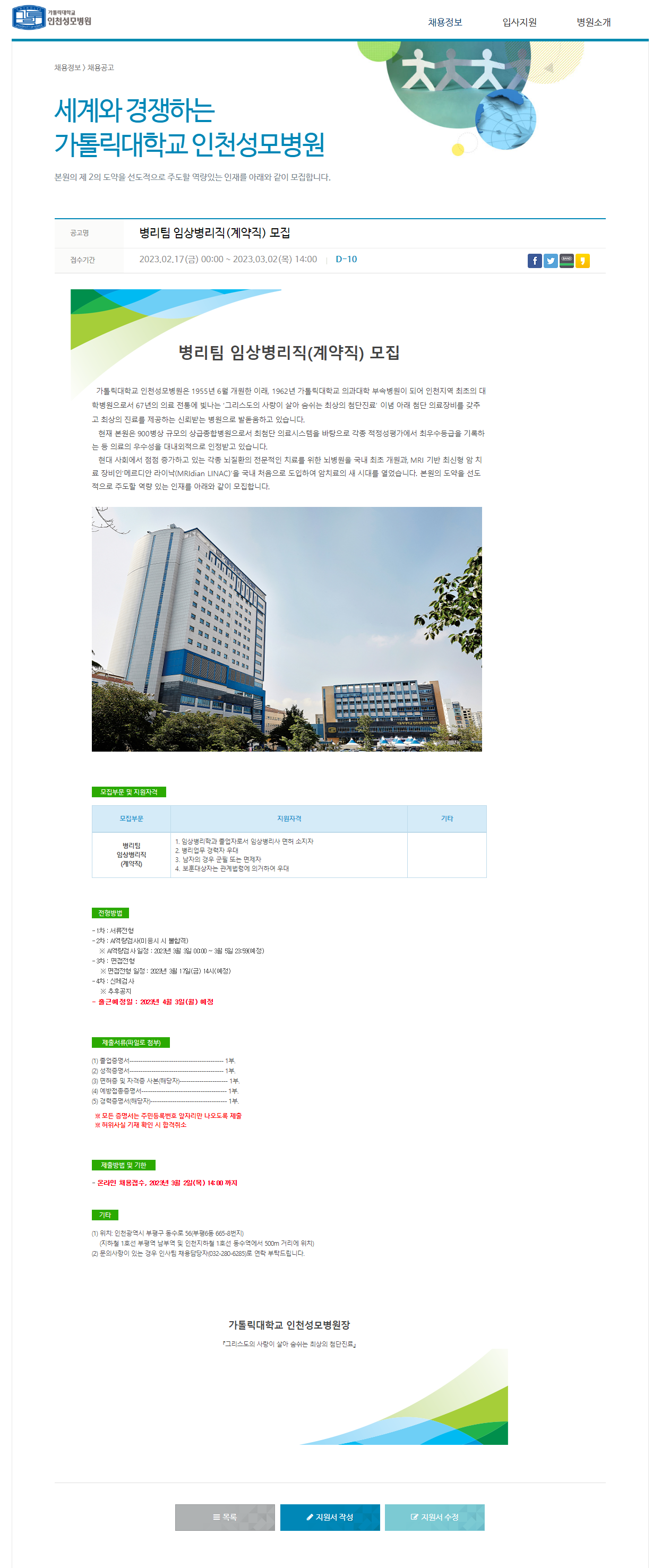 채용공고 | 채용정보 | 가톨릭대학교 인천성모병원 (recruiter.co.kr)