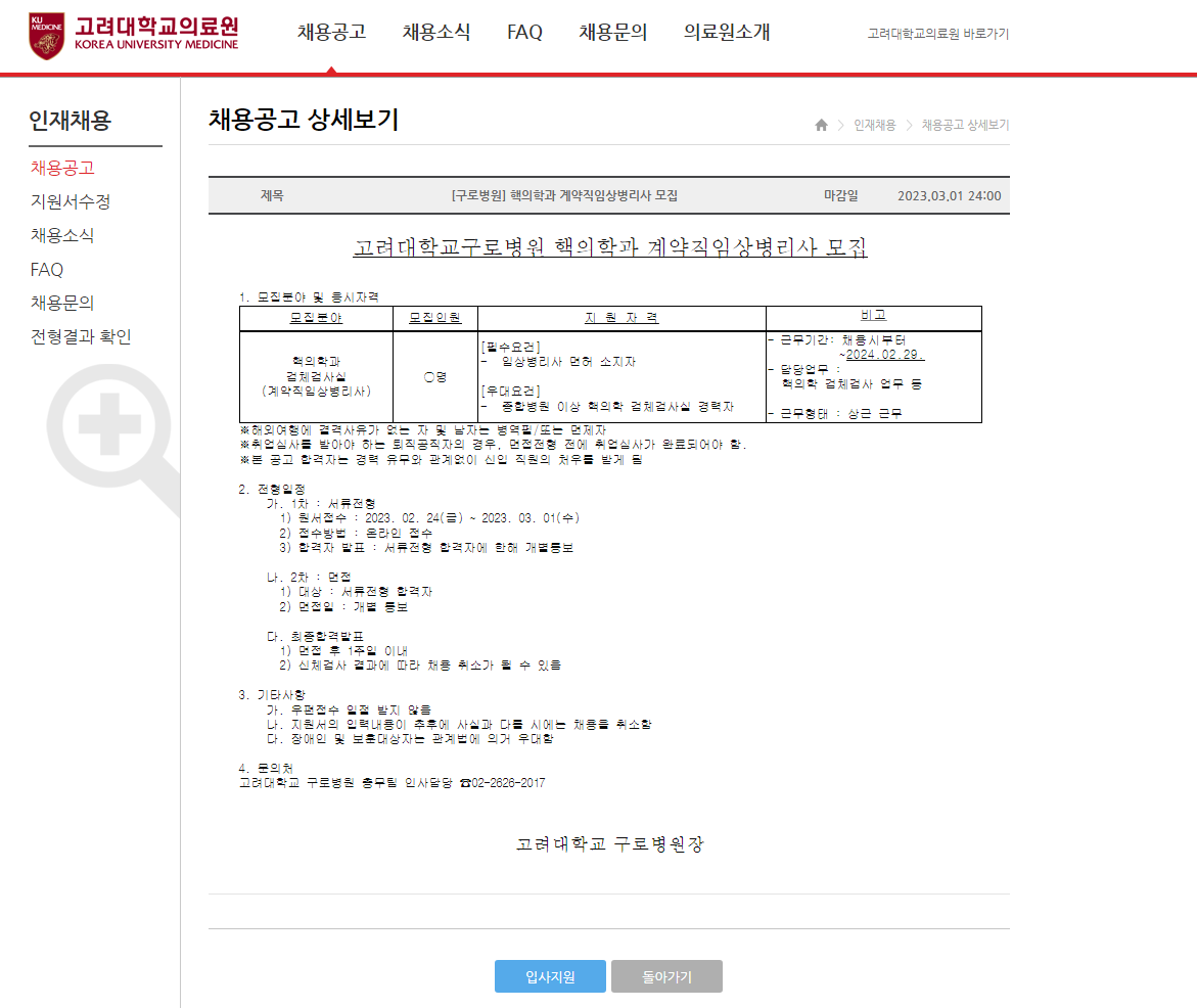 고려대학교의료원 온라인 채용시스템 (kumc.or.kr)