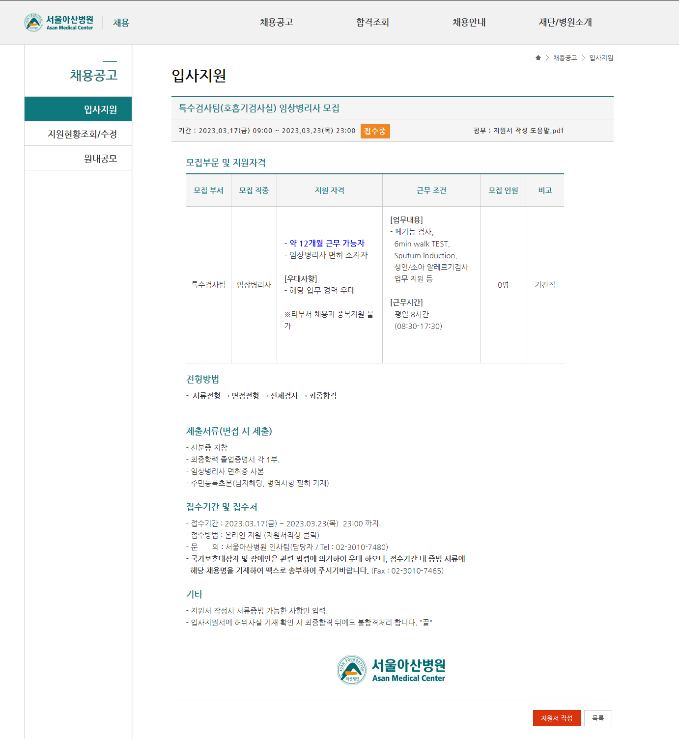 입사지원 | 채용공고 | 서울아산병원 (amc.seoul.kr)