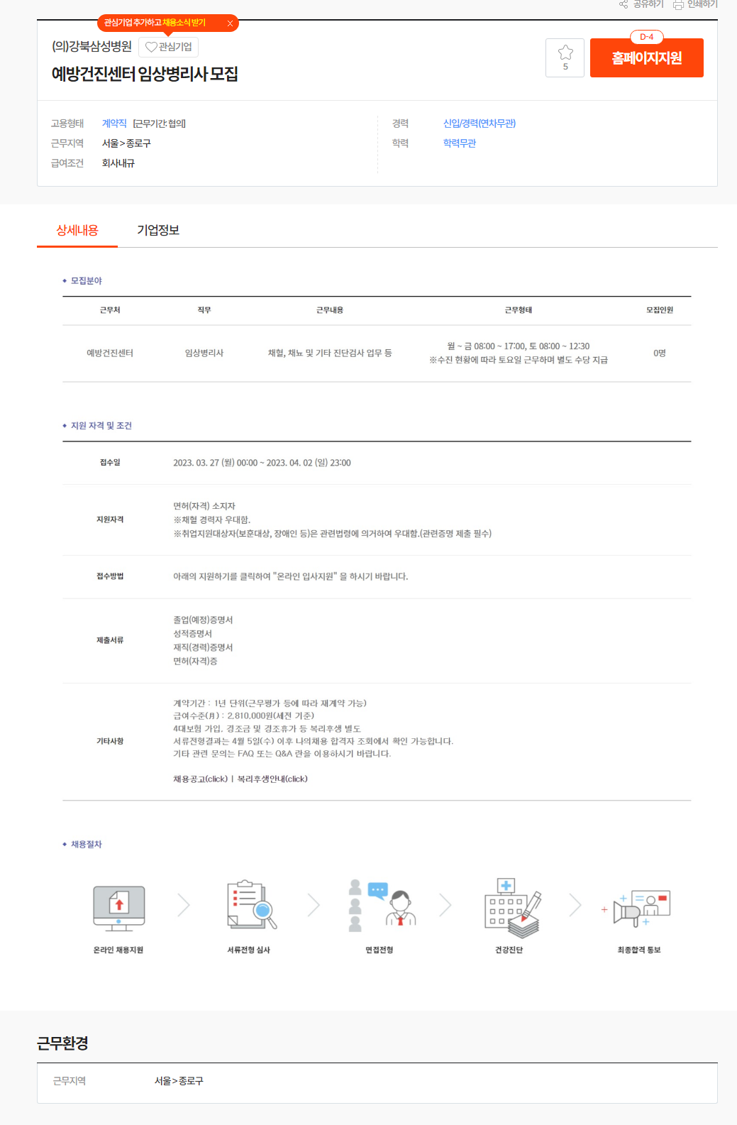 의강북삼성병원 채용 : 예방건진센터 임상병리사 채용 - 인크루트 채용정보 (incruit.com)