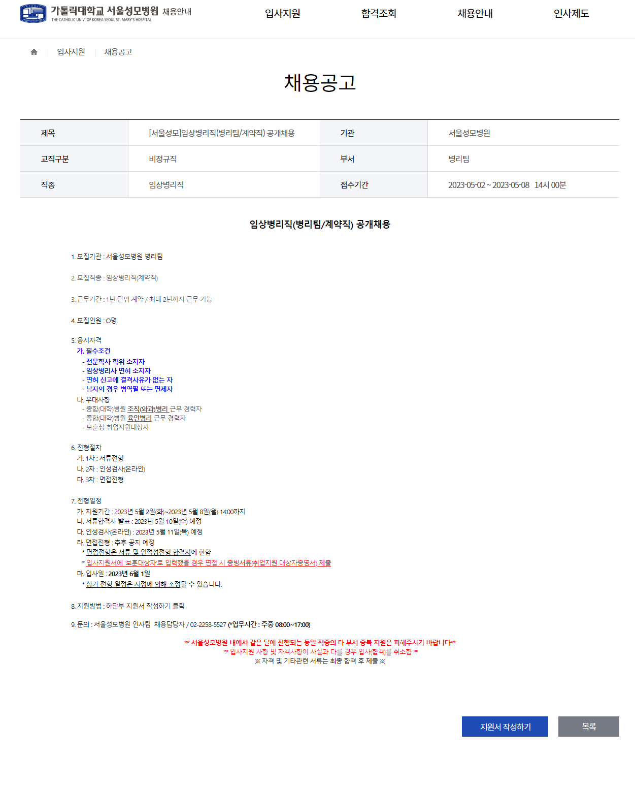 채용공고 - 입사지원 - 가톨릭대학교 서울성모병원 일반채용 (cmcnu.or.kr)