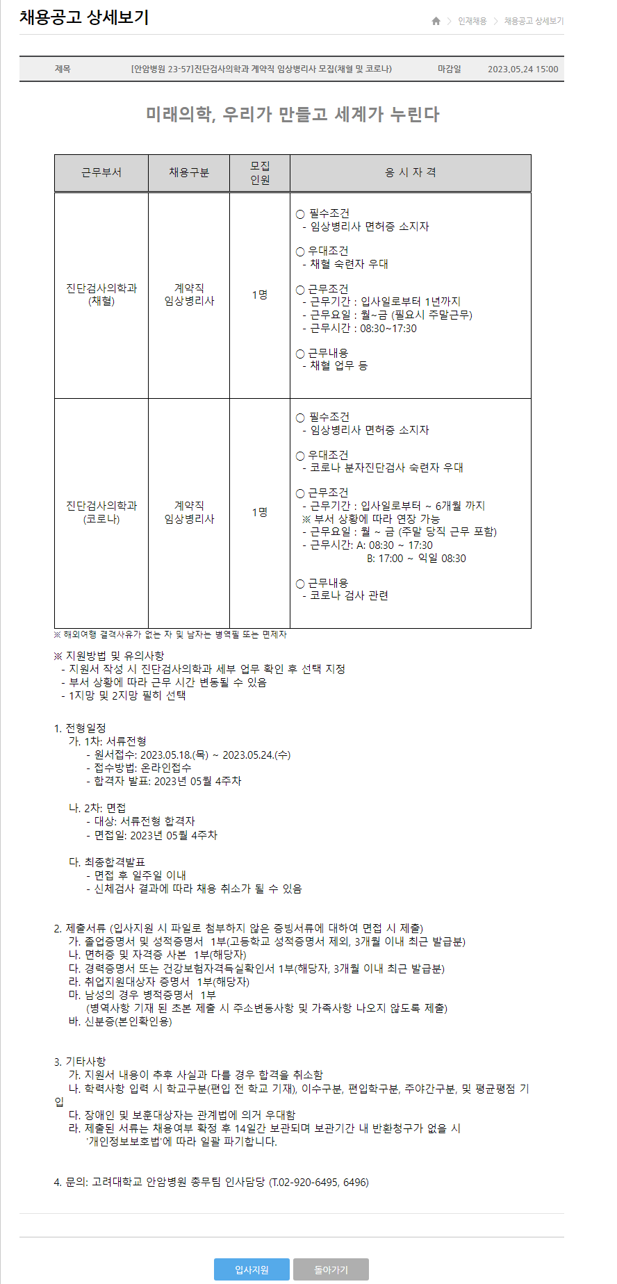 고려대학교의료원 온라인 채용시스템 (kumc.or.kr)