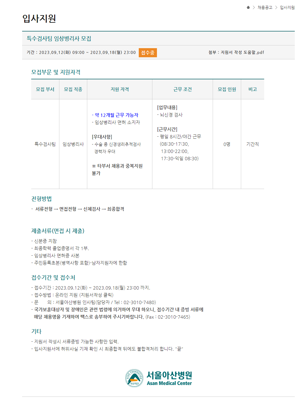 입사지원 | 채용공고 | 서울아산병원 (amc.seoul.kr)