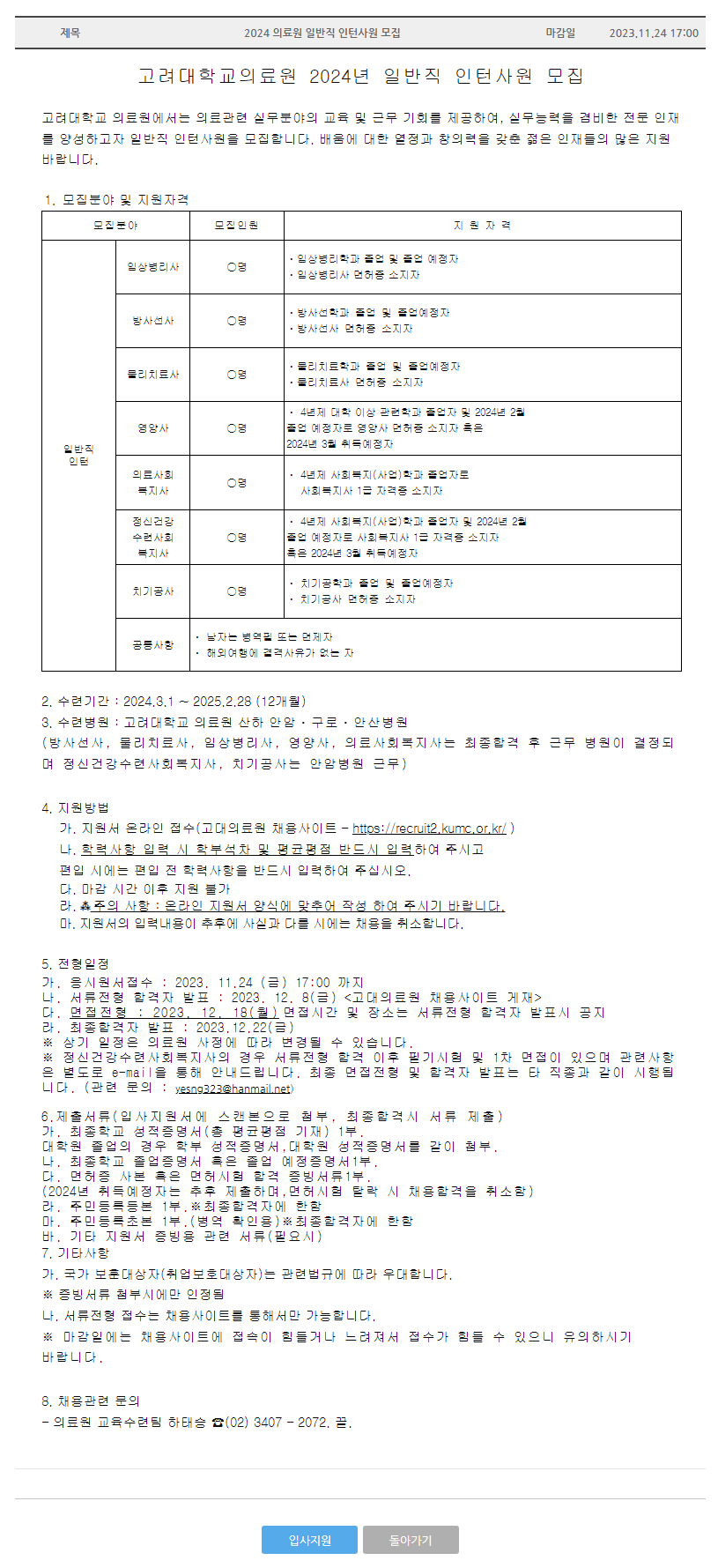 고려대학교의료원 온라인 채용시스템 (kumc.or.kr)