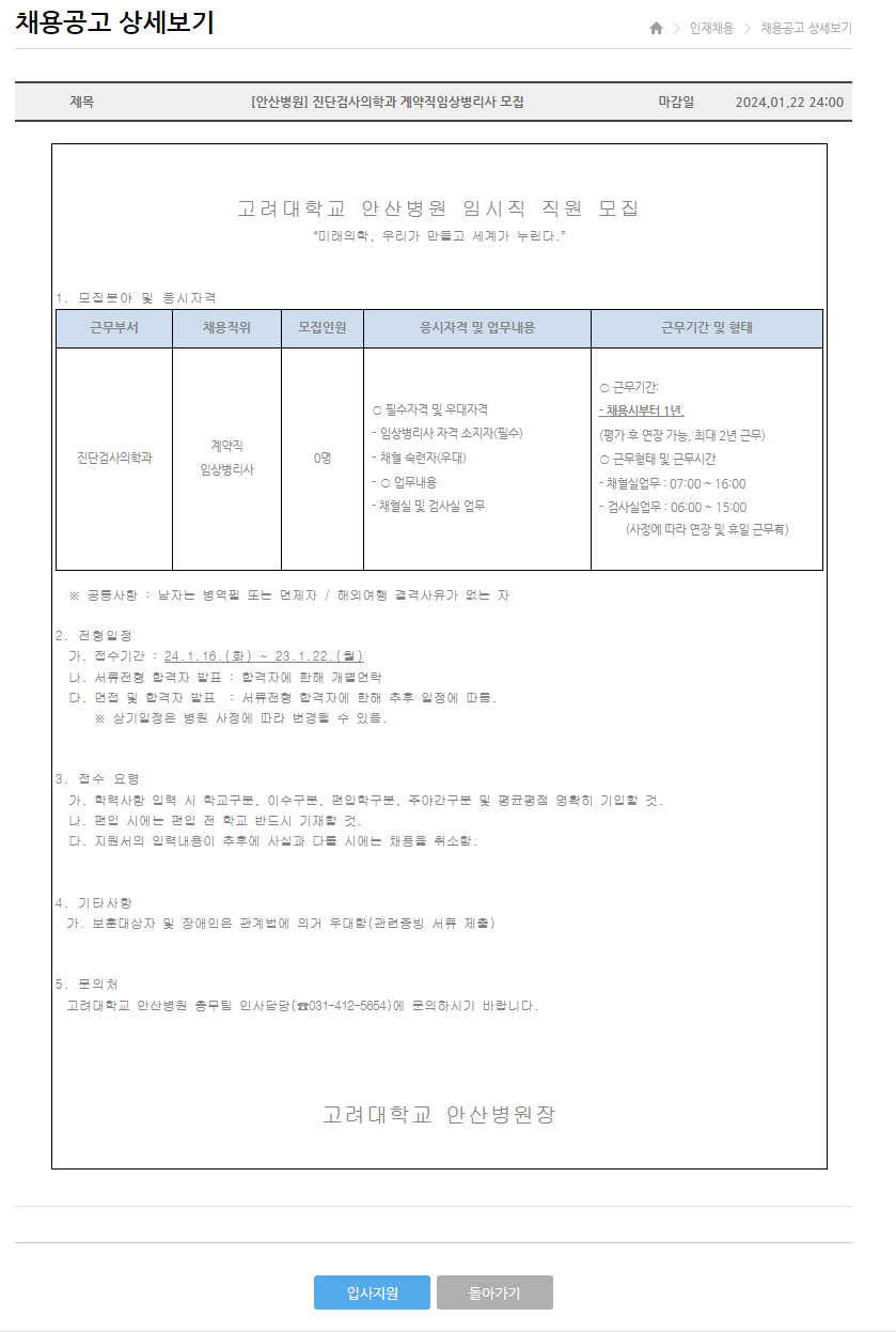 고려대학교의료원 온라인 채용시스템 (kumc.or.kr)