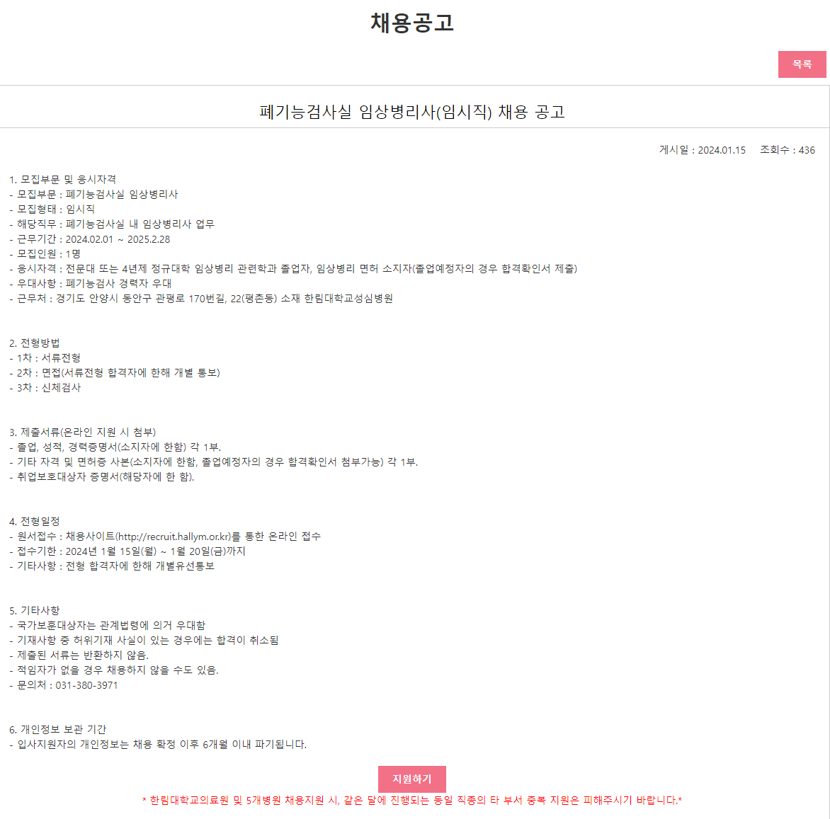 한림대학교의료원 채용정보 (hallym.or.kr)