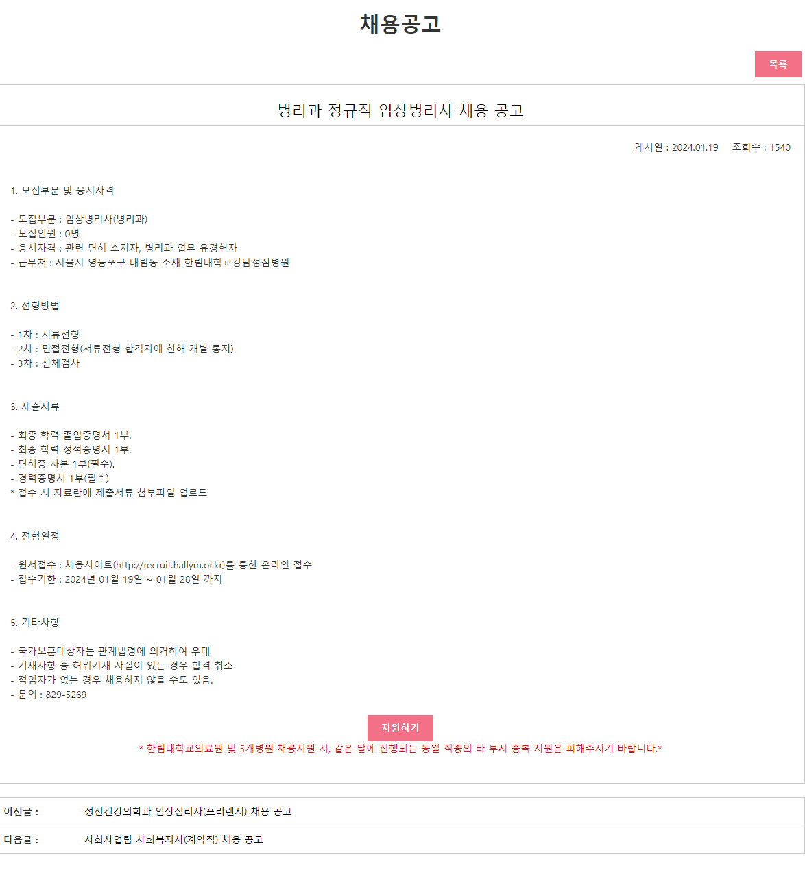 한림대학교의료원 채용정보 (hallym.or.kr)