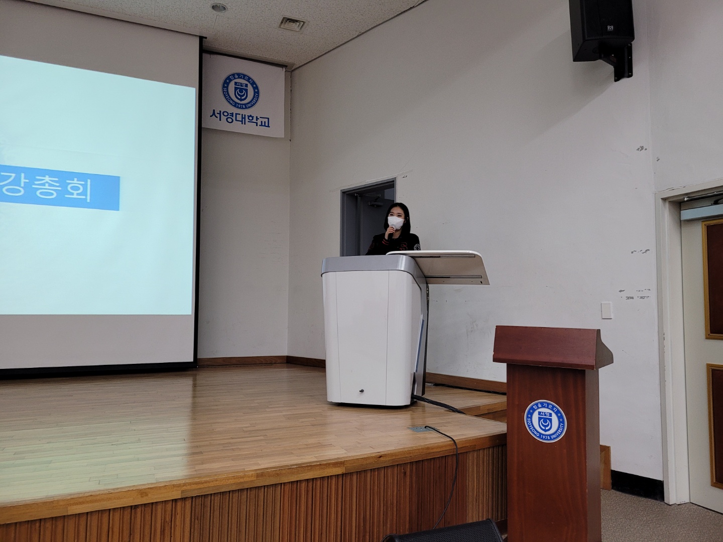 개강총회는 학생회 홍보부장 조호정 학생이 사회를 맡았으며, 처음으로 진행하는 만큼 2020학년도 임상병리과 학생회비 회계 내역을 우선 발표하여 학생회비 지출내역의 투명성을 제고하였다. 이번 총회에서 이지웅 서영대학교 임상병리학과장은 신입생들에게 코로나로 인해 조금은 늦었지만, 진심으로 서영대학교 임상병리과 입학을 축하드리며, 코로나 상황에서도 높은 경쟁률을 통해 입학하였으니, 멋진 대학생활을 하시길 바랍니다.라고 밝혔다.
