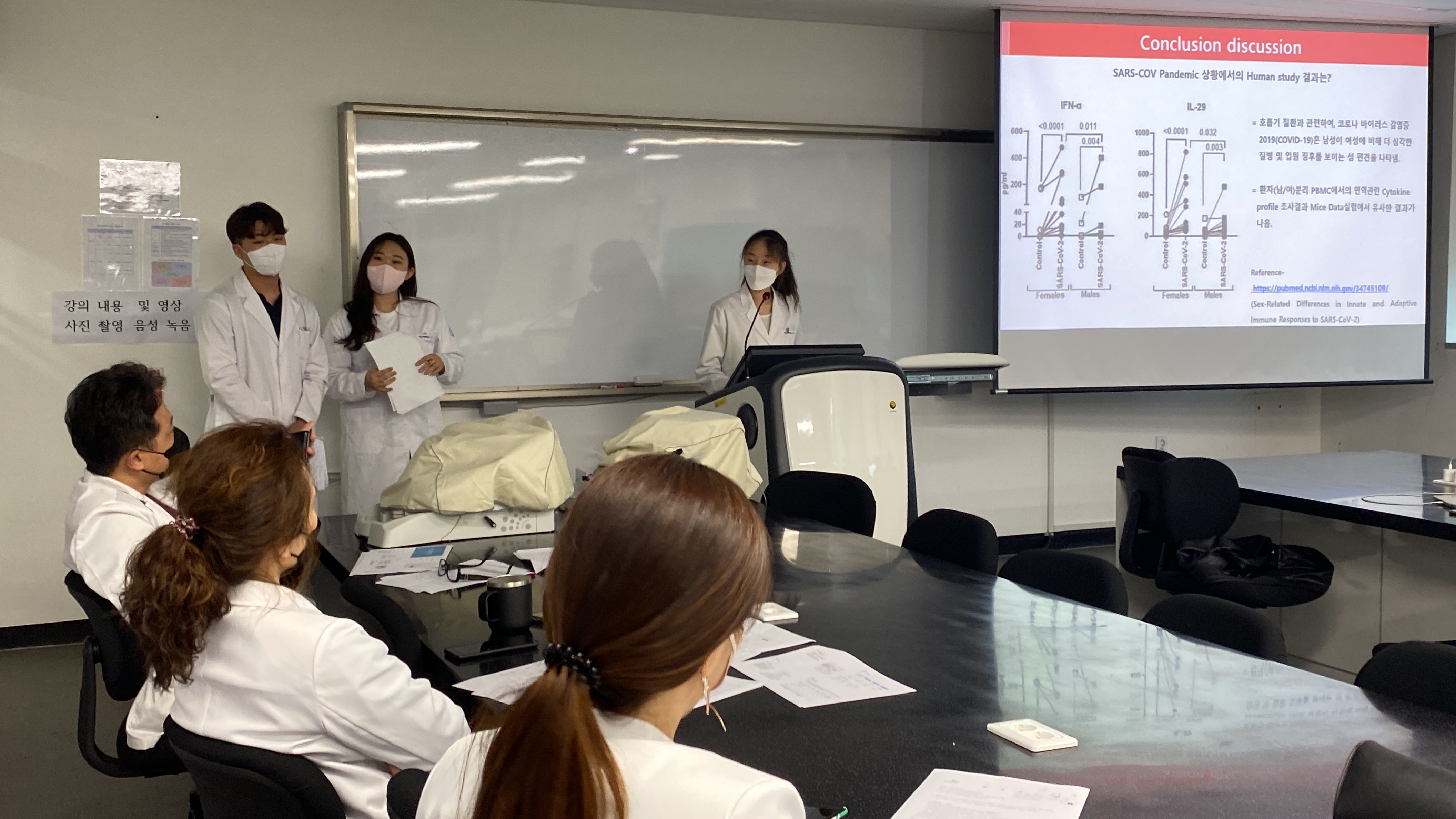 지난 5월 한 달 간, 우리 학과 2학년 재학생들을 대상으로 진행된 "제2회 프런티어 진단 의과학 세미나"가 성황리에 마무리되었다. 올해의 연구 주제로 선정된 "Diagnostic Approach to Respiratory Infectious Diseases"에 대하여 총 6개팀, 18명이 참가하여 다양한 호흡기 질환의 원인체 또는 병인론, 그리고 진단에 대한 연구 논문을 각 팀에서 선정하였고, 한 달 간의 연구 내용을 정리하여 발표하는 것으로, 지난 5/30일 학과 교수들이 참석하여 공개 심사를 진행하였다.