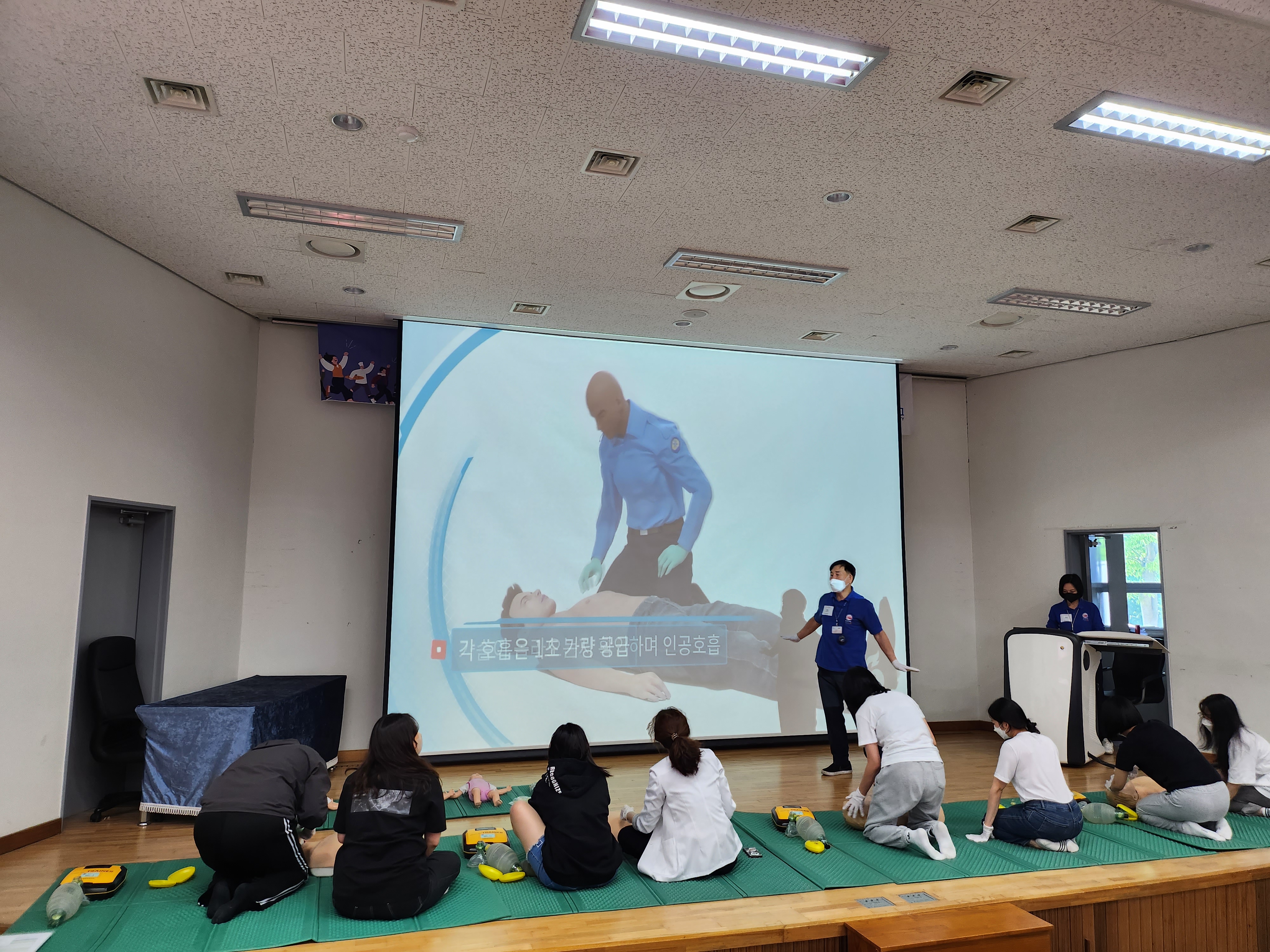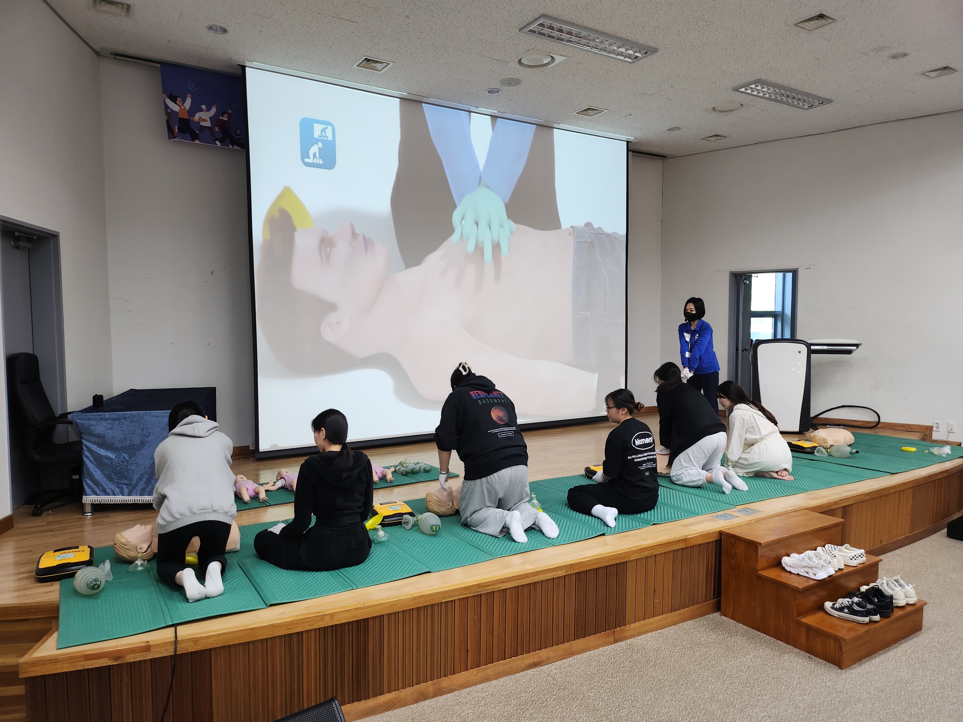 우리 학과는 "보건의료인 교육과정"으로 본 프로그램을 수강하여 병원단계와 병원전 단계에서 발견한 심정지 환자 및 기도폐쇄 등의 심정지 의심 상황에서 초기처치 뿐 아니라 고품질가슴압박술, 자동제세동기(AED) 작동과 연관 술기를 실습하는 심폐소생술(CPR) 교육을 이수하였다.