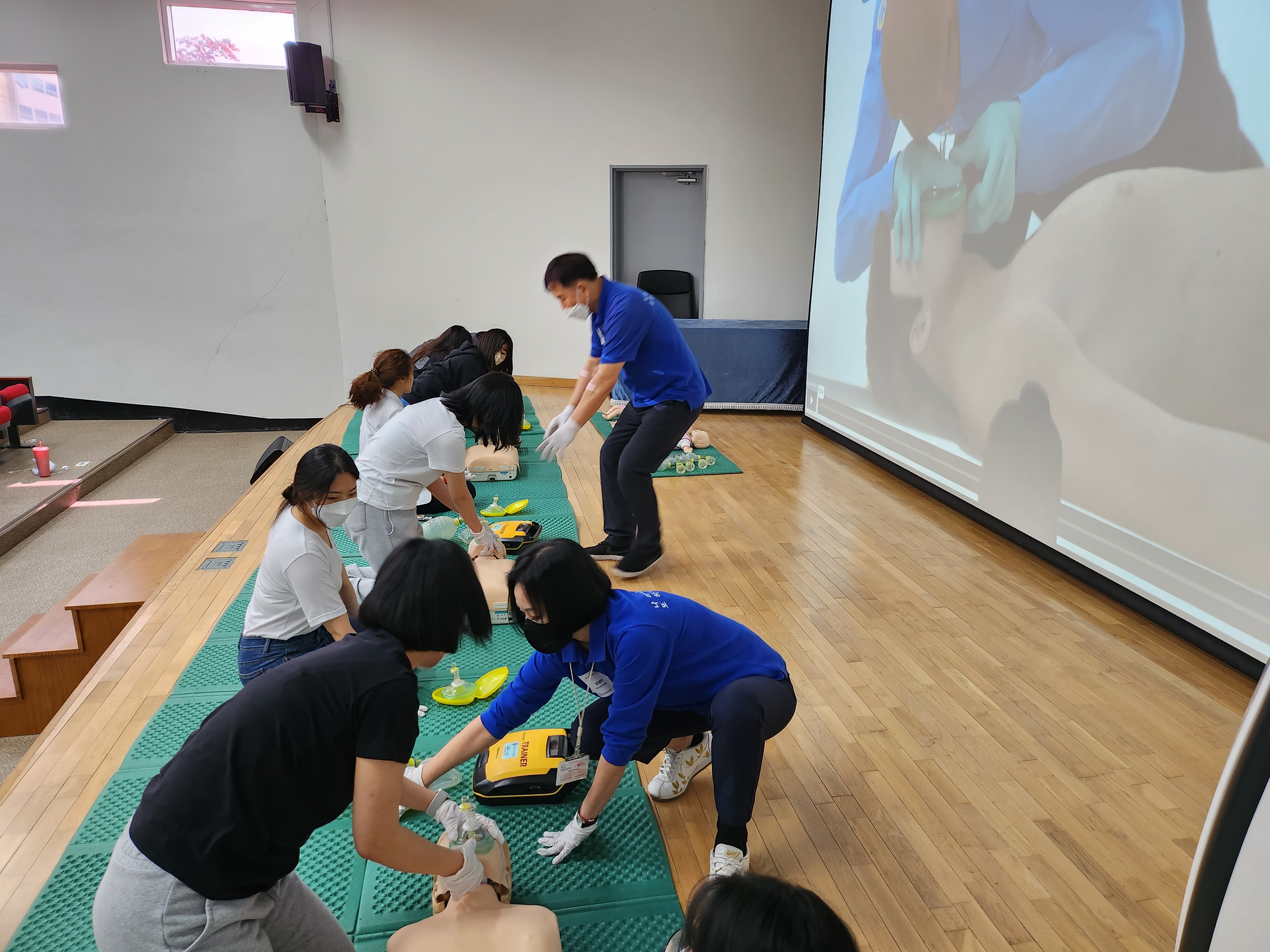 이 교육을 통해 성인과 영아를 대상으로 한 1인/2인 구조술과 자동제세동기 및 백마스크 장비사용법, 구강-구강호흡법, 기도폐쇄 처치법 등에 관련된 이론을 익히고 실습과정을 거치고 술기평가와 필기평가를 치렀고 수강생 전원이 합격하는 기쁨을 누렸다.