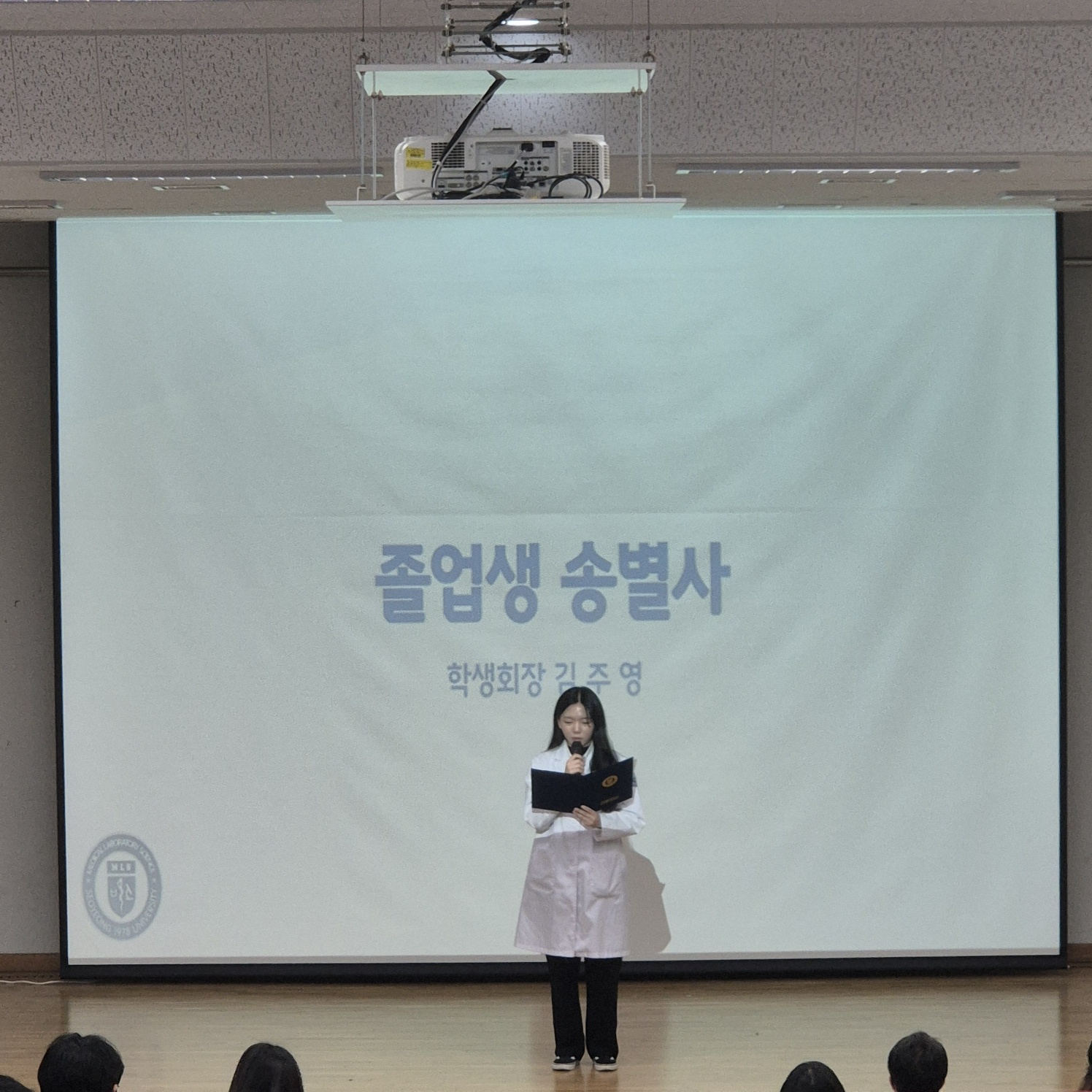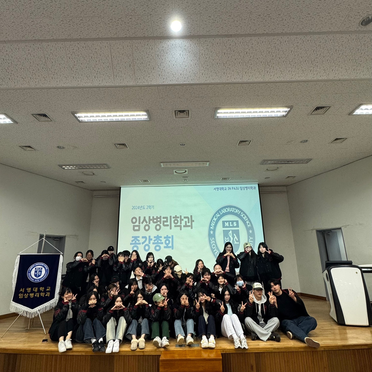 최강임상 5대 학생회 학생회장인 23학번 김주영 학생의 사회로 진행된 종강 총회는 최강 임상 "비상밴드", "수어지교"의 멋진 공연으로 시작되었습니다. 이지웅 학과장님의 개회사, 제 5대 학생회 소개, 졸업하는 3학년 선배들을 위한 송별사, 대한임상미생물 검사학회 학술대회 최우수상 시상 및 연구발표가 이어졌습니다.
