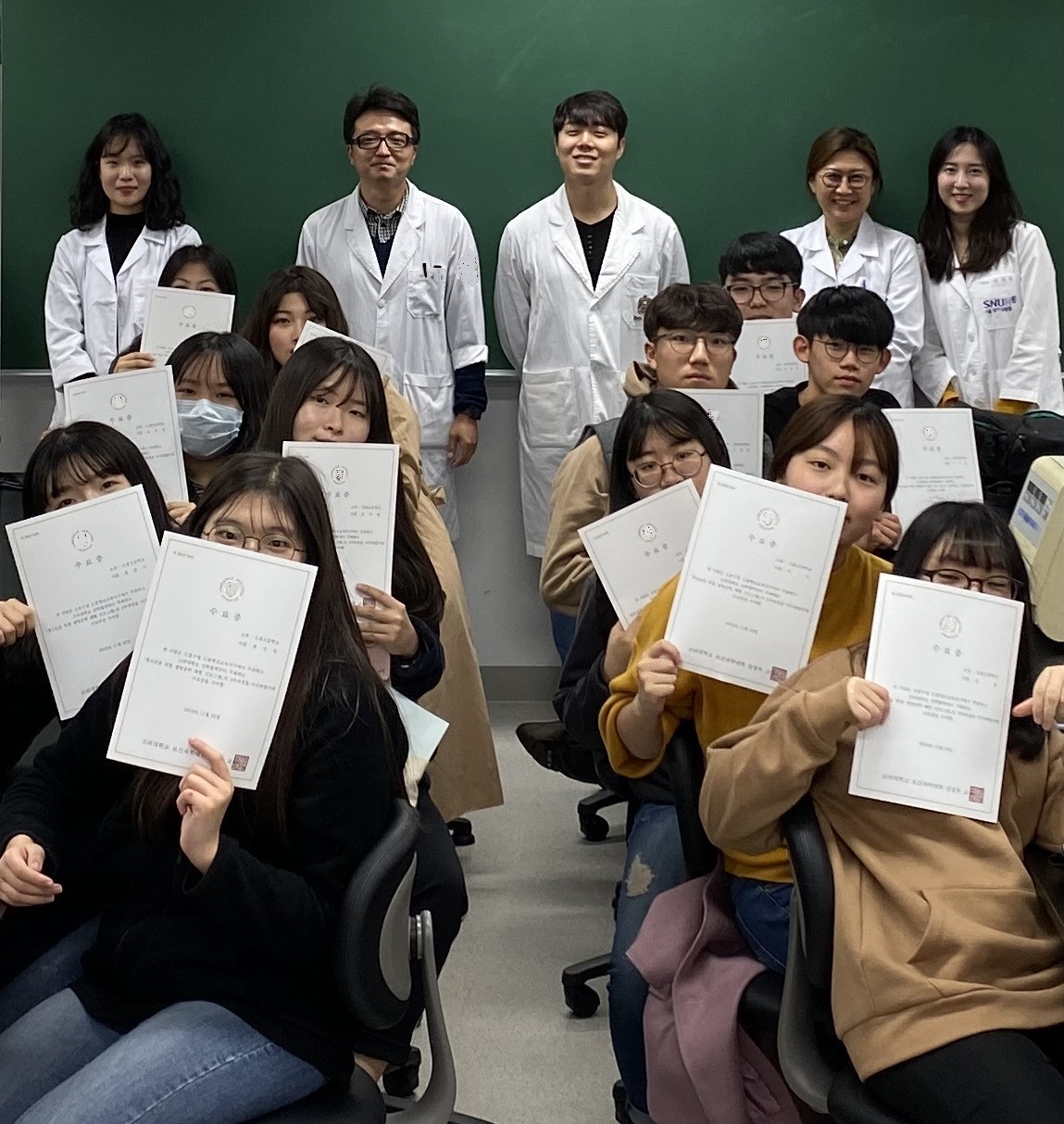 지난 11월 2일(토) 서영대학교 파주캠퍼스 임상병리과는 산학 협약을 맺은 고려대학교 분자진단연구회와 함께 서울시 도봉구 관내 6개 고등학교에서 130여명의 학생들이 참여한 가운데 도봉구와 함께하는 ‘생명과학체험교실’ 프로그램 총 3주차 과정을 성공적으로 마쳤다. 마지막 3주차 과정을 마치면서 3주 전과정을 수료한 학생들에게는 서영대학교 파주캠퍼스 임상병리학과장(이지웅)이 수료증을 전달하였다. 향후 서영대학교 파주캠퍼스 임상병리과와 고려대학교 분자진단연구회는 4차산업혁명 시대를 맞아 고등학생들의 과학적 사고를 높이기 위해 지속적으로 이 프로그램을 진행해 나갈 것이다.