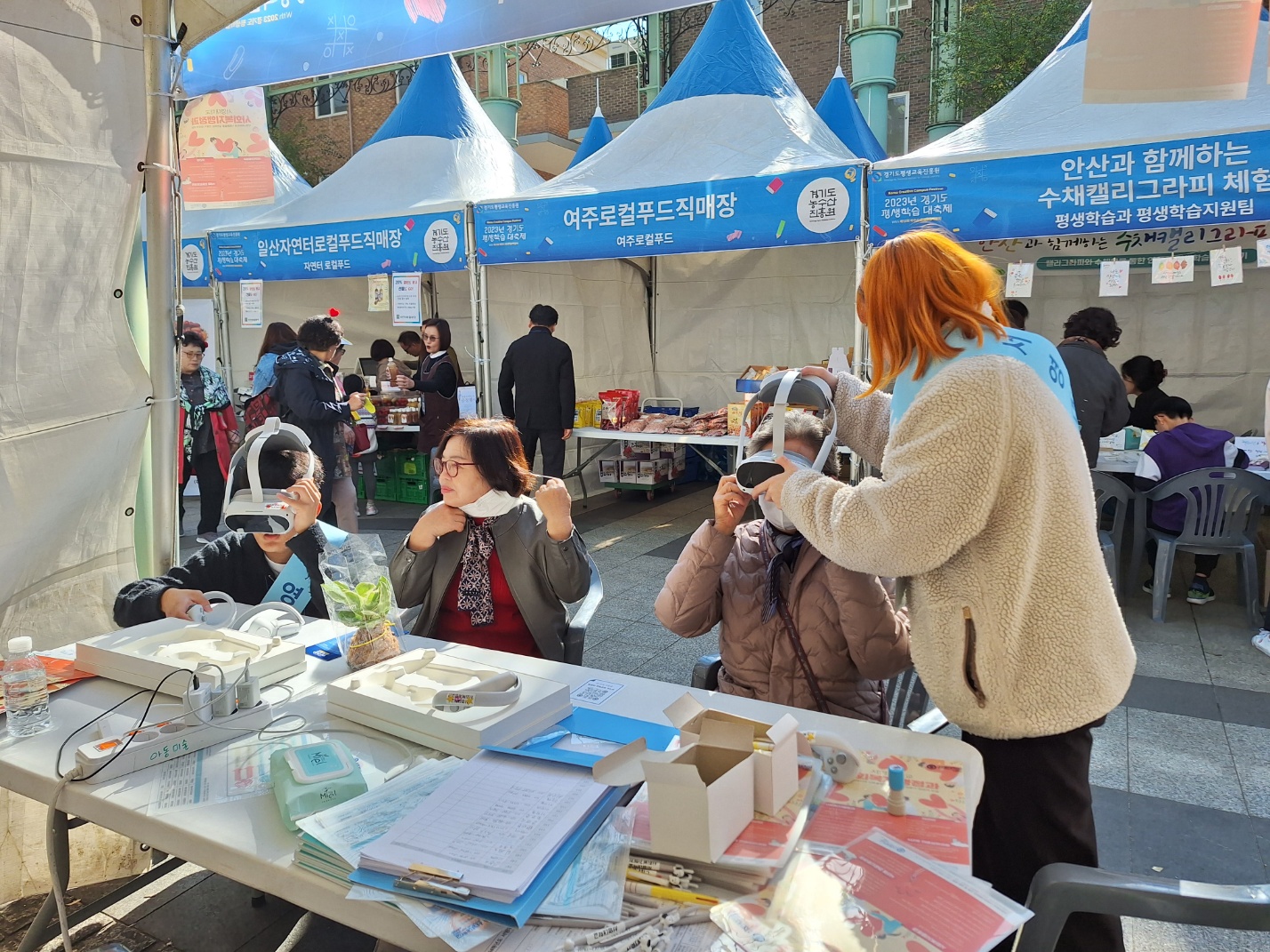 저희 교수님들 인솔하에 사회복지행정과 1,2학년 학생들이 VR을 활용한 직무제험(인생 2모작)이라는 주제로 체험부스를 운영하였습니다.