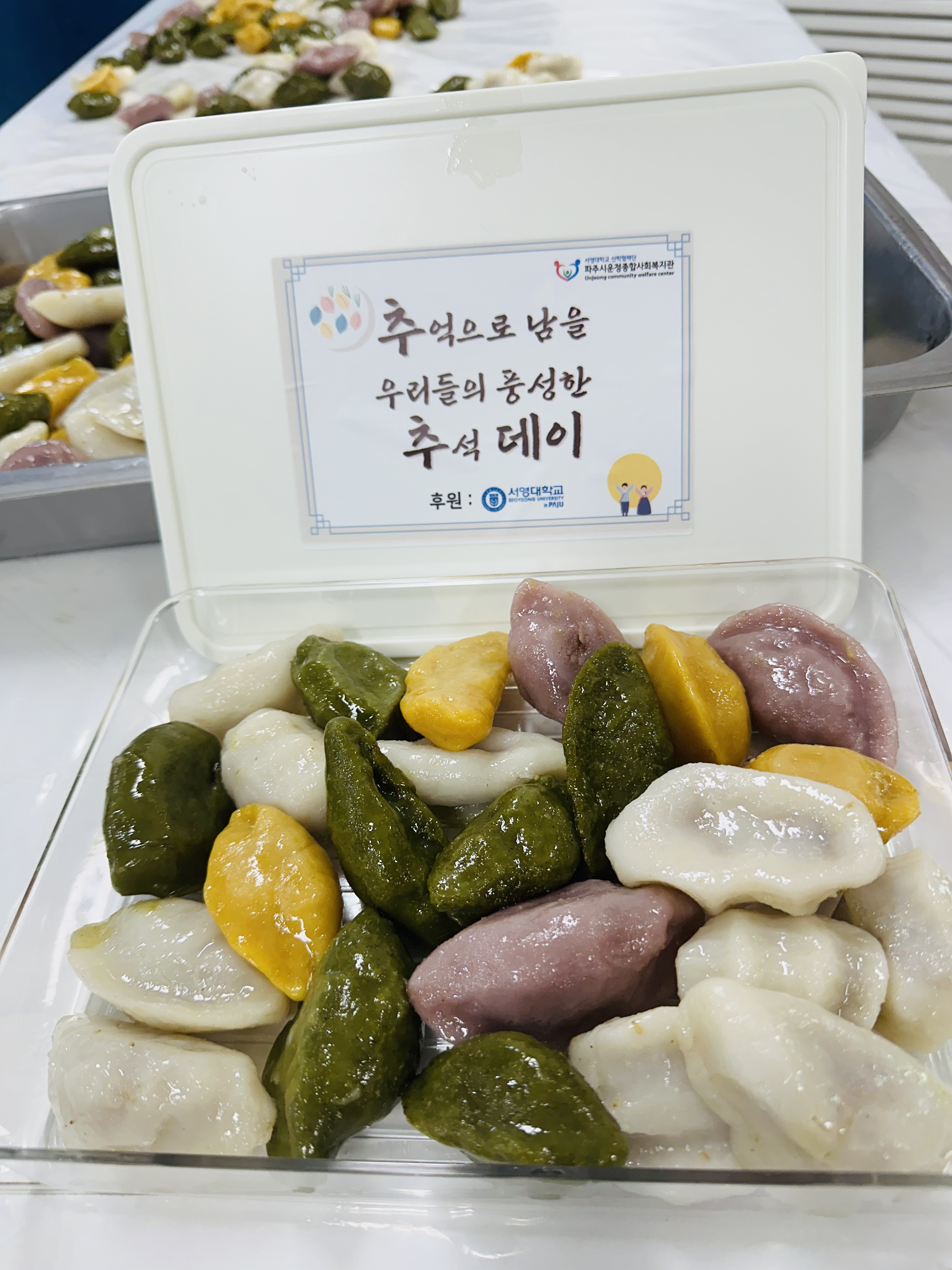 위생을 철저히 지키기 위해 위생모자와 장갑을 착용하고 송편을 빚었으며, 송편 만들기 팀, 추석 물품 포장팀, 송편 배달팀으로 나뉘어