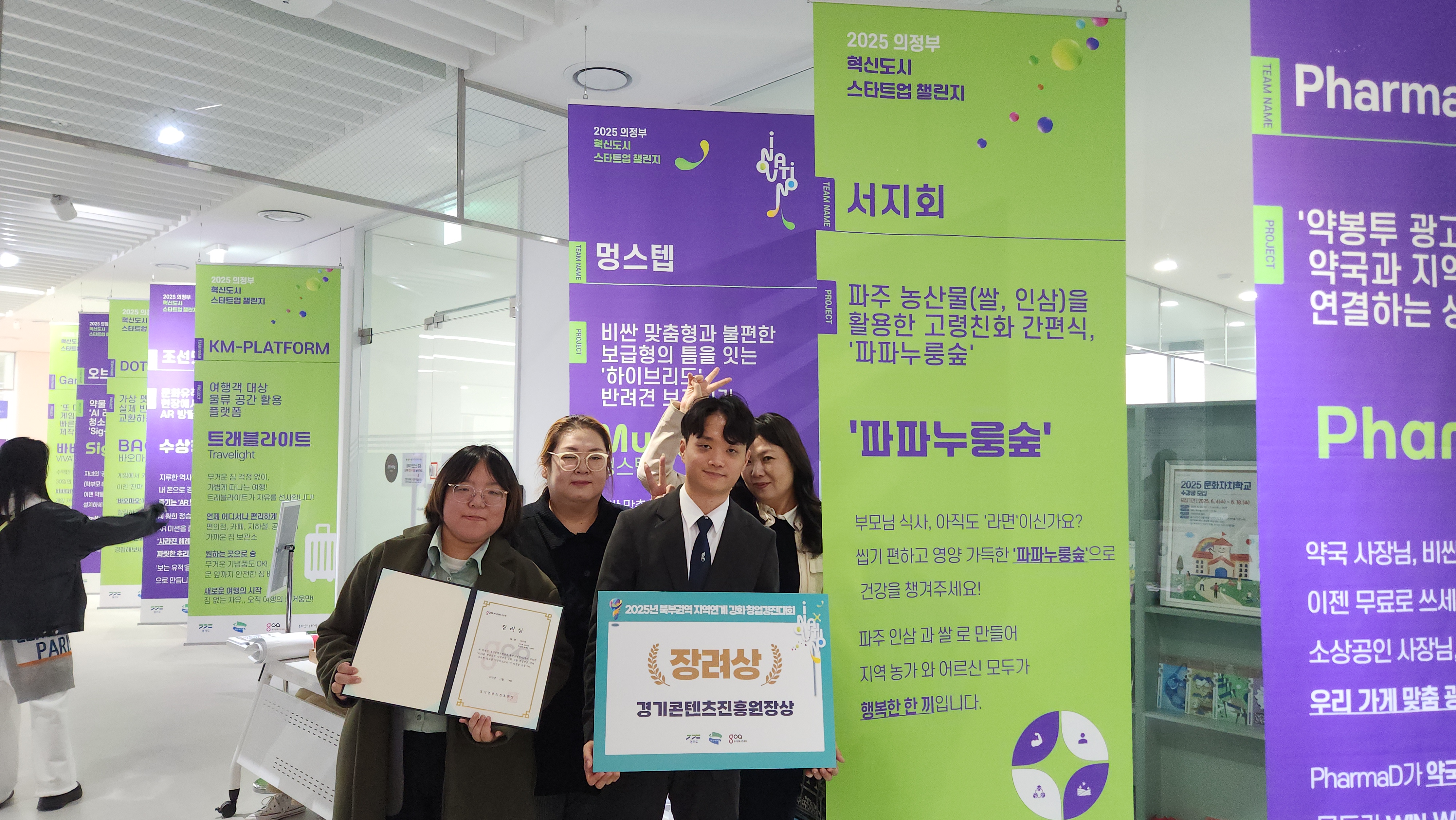 O. 우리대학(총장 김정수) 사회복지행정학과(학과장 김효선) 소속팀 서지회학생들은 1114() ‘2025 북부권역 지역연계 강화 지원 학생 부문 창업경진대회에 참가하여 장려상을 수상하는 성과를 거두었다경기콘텐츠진흥원이 주최하는 창업경진대회는 경기북부 지역 대학생들의 문제 해결형 창업 아이디어 개발 대회이다.